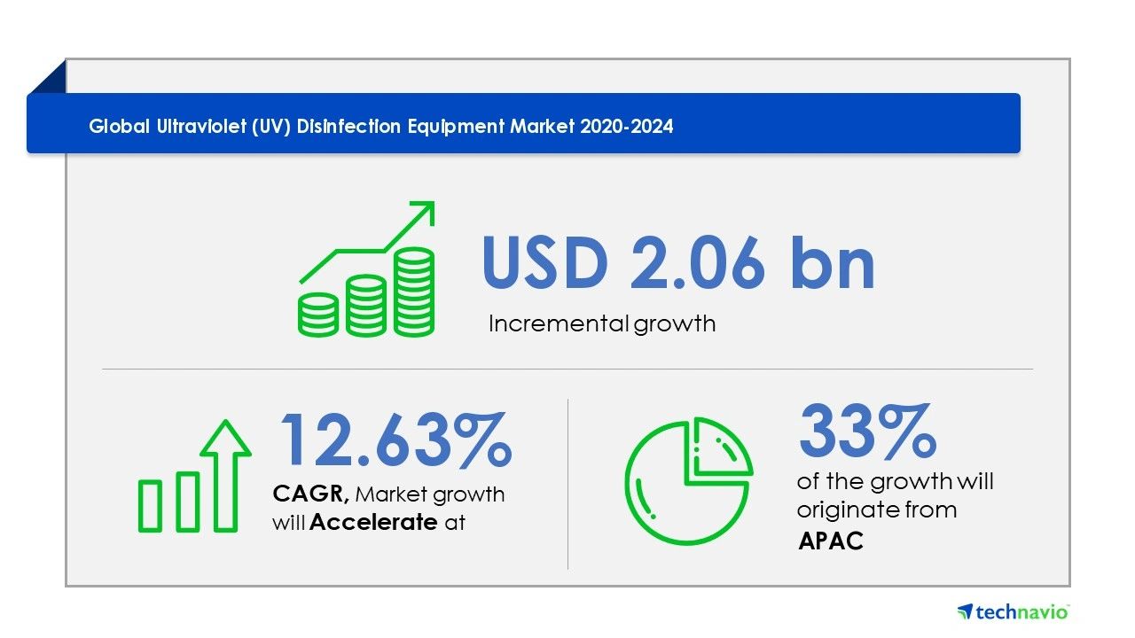During 2020-2024 ultraviolet disinfection equipment market size will grow by USD 2.06 over at a CAGR of almost 14%.